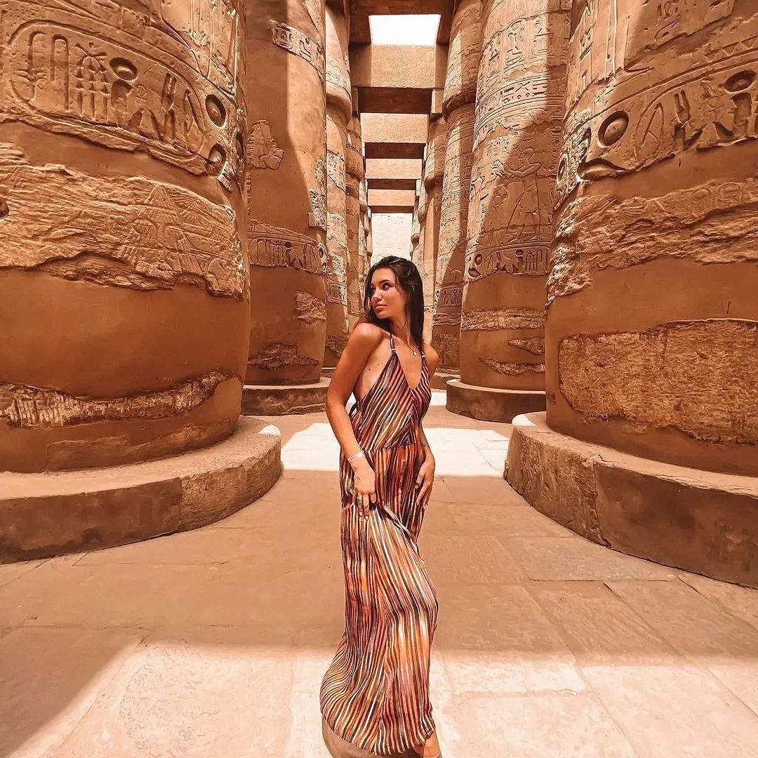 Recently while I was on a world tour I went to this mesmerizing place located in Cairo, Egypt. Glanced at these mind-boggling sculptures there and became a fan of it. While flying to Egypt I beforehand got myself dresses that will aid me in camouflaging with the landscape. So I wore this colorful, sophisticated dress from Revolve,